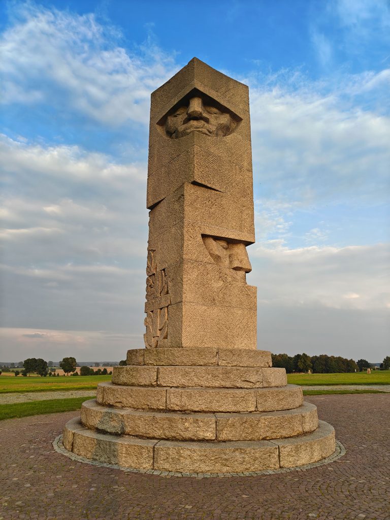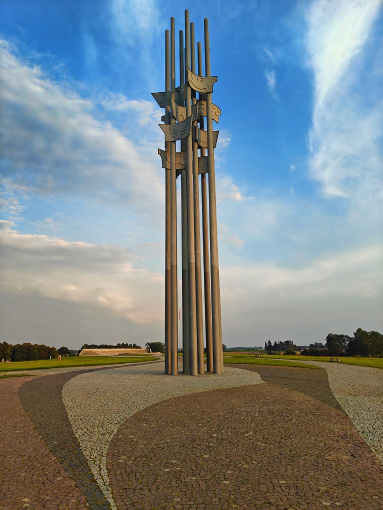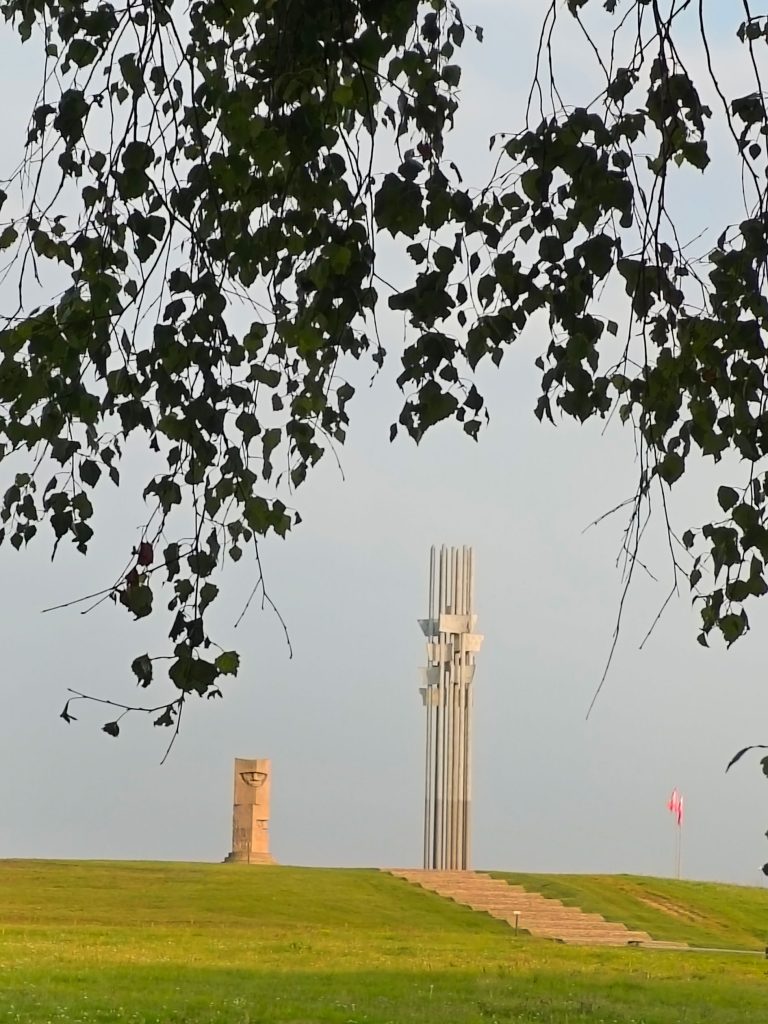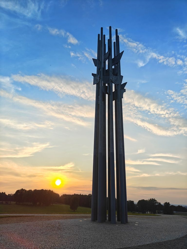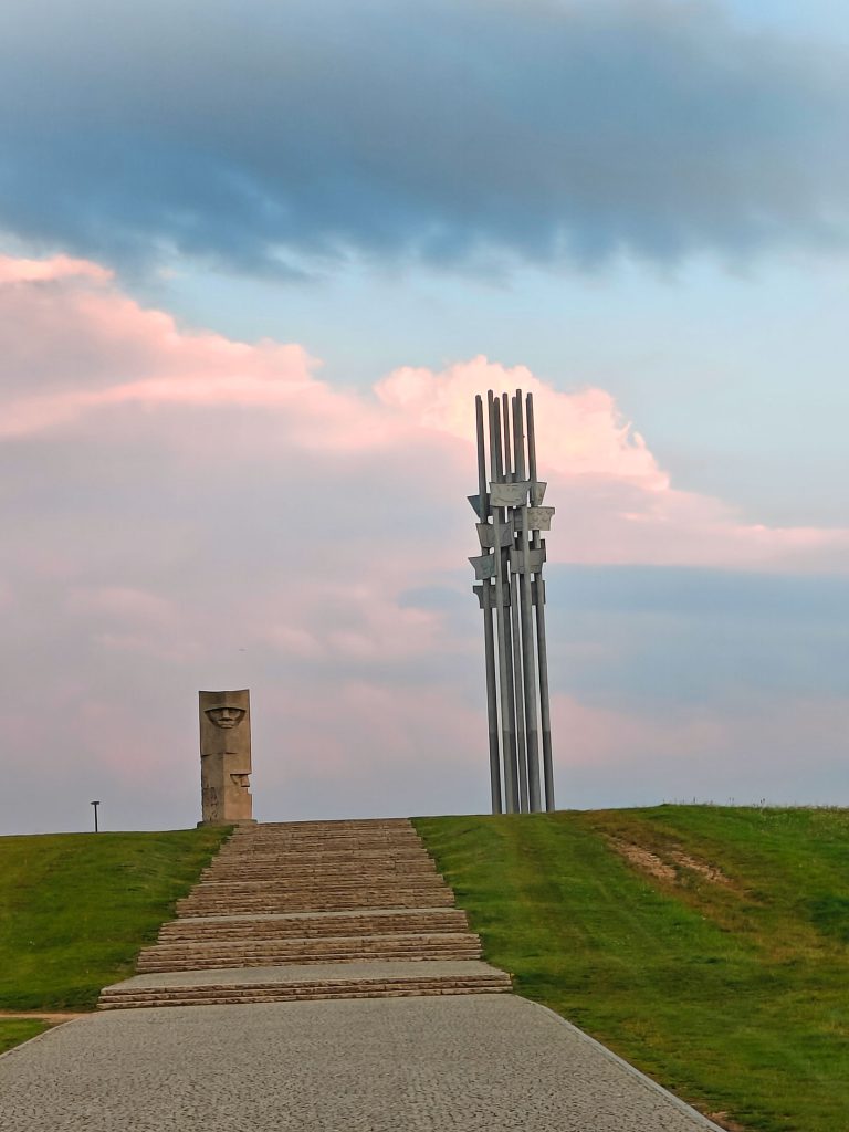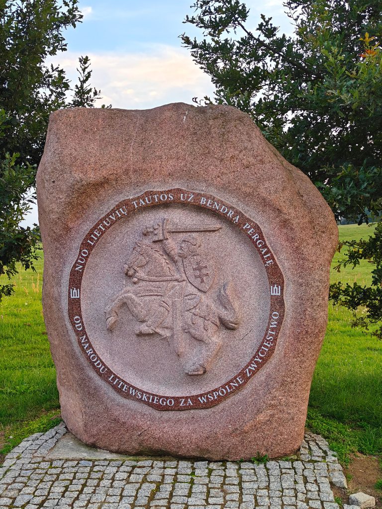Horizontą nuskaidrina besileidžiančios saulės nutvieksti paminklai: monumentalūs stulpai primena, kad ši vieta svarbi ne tik Lietuvai ir Lenkijai, bet ir visai Europos istorijai.