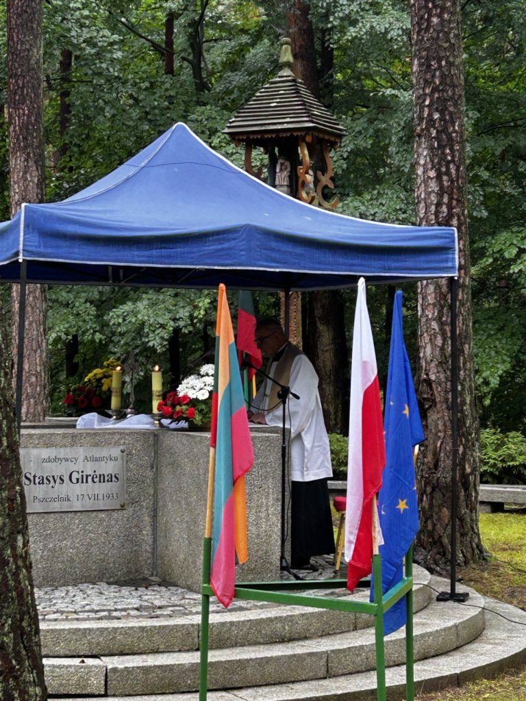 Vėliau delegacija vyko į Myslibužą, kur Pščelniko miške, lietuvių lakūnų žūties vietoje, prie paminklo, skirto S. Dariaus ir S. Girėno skrydžiui įamžinti, vyko iškilmingas minėjimas. Renginio dalyviai išklausė Šventojo Rašto skaitinius, Lietuvos ir Lenkijos institucijų atstovai prie paminklo padėjo vainikus ir gėlių, Punsko S. Dariaus ir S. Girėno mokyklos mokiniai skyrė dainas žuvusiems didvyriams ir Lietuvai. Ambasadorius savo kalboje padėkojo Myslibužo miesto ir valsčiaus burmistrui Piotrui Sobolewskiui, Lietuvos garbės konsului Ščecine Wieslavui Wierzchosiui, S. Dariaus ir S. Girėno vardo mokyklų Myslibuže ir Punske vadovams ir mokytojams už visiems lietuviams brangios istorinės atminties puoselėjimą. Vizito pabaigoje delegacija ir renginio svečiai aplankė S. Dariaus ir S. Girėno muziejų.