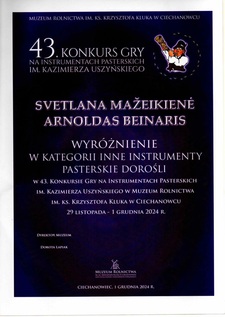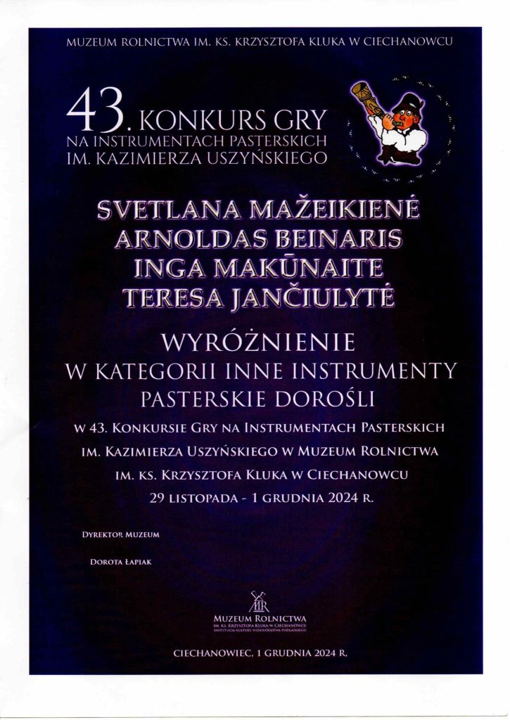 Š. m. lapkričio 29 – gruodžio 1 dienomis Cechanoveco (Ciechanowiec) mieste vyko 43-iasis piemenėlių instrumentų muzikos konkursas, kuriame dalyvavo Punsko muzikos mokyklos mokiniai, mokytojai ir tėvai.
