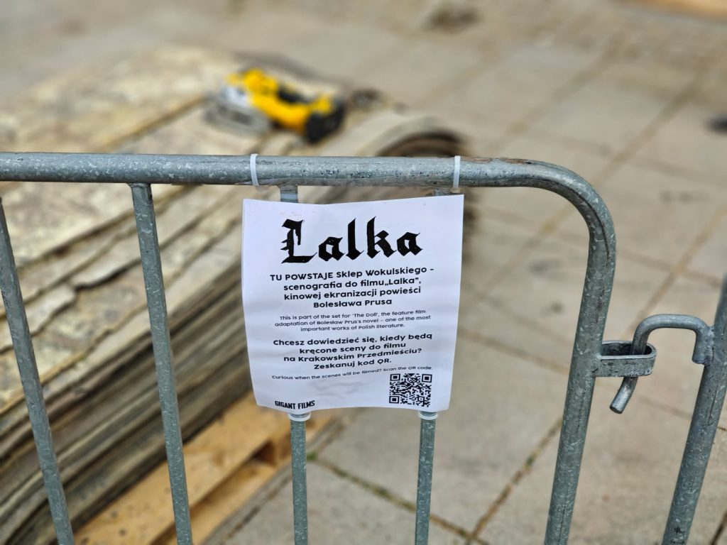 Filmavimas prasidėjo šių metų liepos mėn., o baigtis turėtų gruodį, prieš pat Kalėdas. Iki šiol jau filmuota daugelyje Varšuvos vietų – Lenckių bute (Al. Ujazdowskie), Lazenkų parke, Senamiestyje. Mums pavyko užfiksuoti, kaip buvo ruošiama scenografija gatvėje Krakowskie Przedmieście (trumpoje jos atkarpoje prie Šv. Kryžiaus bažnyčios). Spalio pradžioje dabartines parduotuvių vitrinas pridengė XIX a. užrašai, o prie pat Mikalojaus Koperniko paminklo trumpam iškilo naujas pastatas. Jame buvo įrengta pirklio S. Vokulskio parduotuvė, kuria rūpinosi I. Žeckis. Spalio antroje pusėje čia jau vyko filmavimas. Kadruose atgimė senoji XIX a. Varšuva. Grindiniu vėl riedėjo karietos, pašaliuose dirbo prekeiviai, vaikštinėjo miestiečiai. Aktoriai filmuosis dar ir kitur – Nieborove, Vroclave, Lodzėje, Paryžiuje…