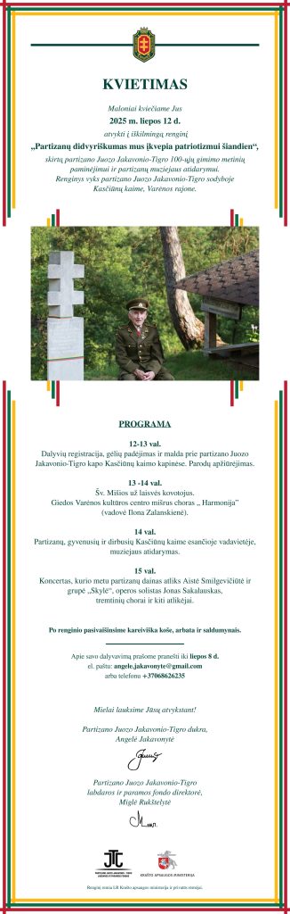 Renginį organizuoja: „Partizano Juozo Jakavonio-Tigro labdaros ir paramos fondas”.