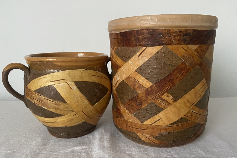 Ingos Samoškienės indai, apipinti beržo tošimi