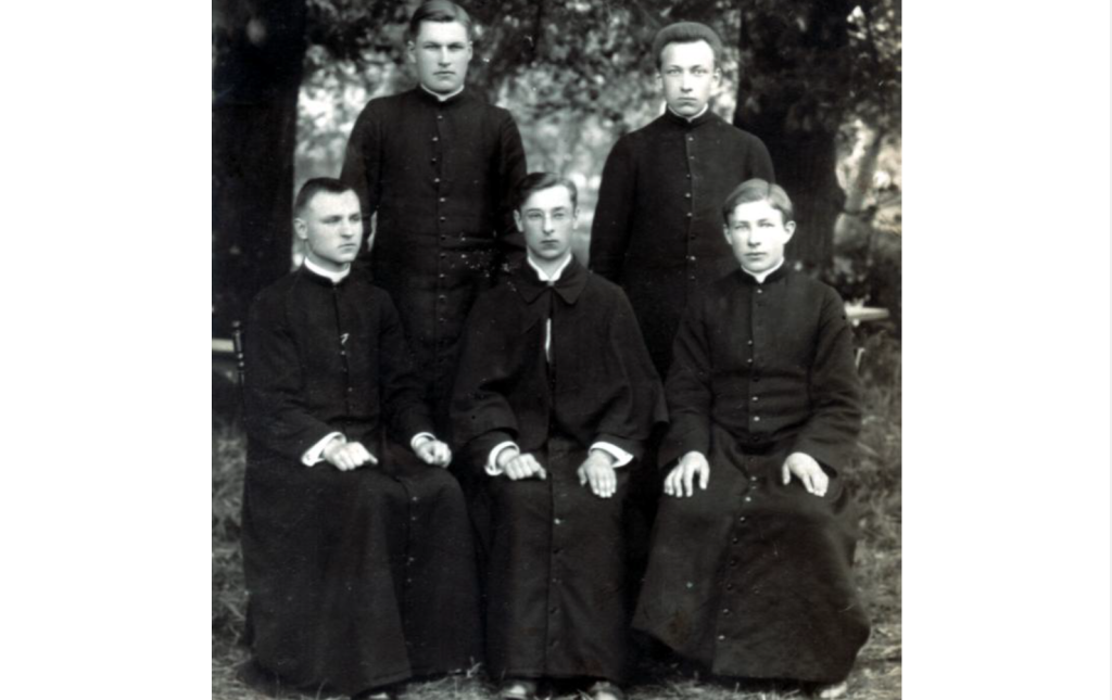 Pirmoje eilėje iš dešinės pirmas Juozapas Laukaitis, trečias – Antanas Maceina.