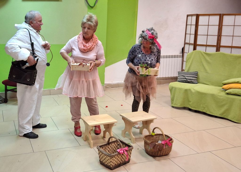 Jau nebe pirmą kartą Suvalkuose lankosi Punsko trečiojo amžiaus universiteto artistai. Juos, išeinančius į sceną, linksmai pasitiko „Ančios“ kapela. Šį kartą Punsko „Bobutės“ atvežė dovanų spektaklį „Petro ūkis“ (scenarijaus autorė ir režisierė Rūta Burdinaitė).