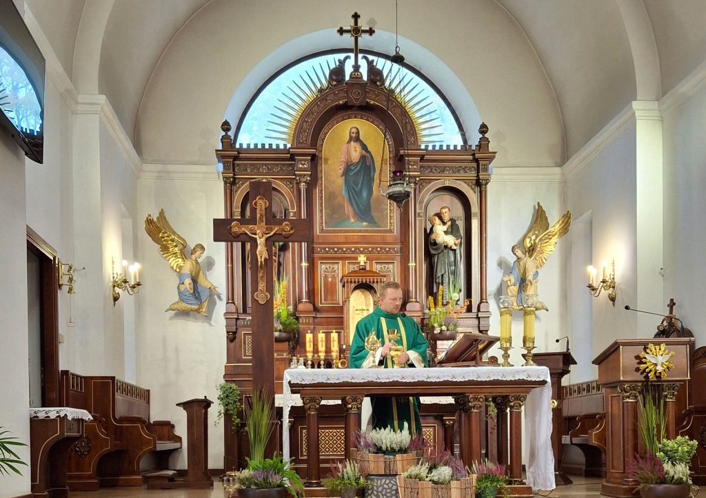 Pagal ilgametę tradiciją renginys prasidėjo lietuviškomis šv. Mišiomis Dievo Gailestingumo šventovėje – Švč. Jėzaus Širdies bažnyčioje (Gegužės 3-iosios konstitucijos parke). Pamaldas atnašavo Punsko vikaras kun. Adomas Adukauskas. Labai gražiai šv. Mišiose pasirodė Suvalkų lietuviai: Aurelija Pečiulytė pagiedojo psalmes, Aneta Aleksaitė ir Kostas Leončikas perskaitė skaitinius, o Genovaitė Pečiulytė – maldavimus. Tą dieną šventovėje vyravo pakili nuotaika, matėsi daug naujų veidų. Pamaldų metu skambėjo Suvalkų bažnytinio choro atliekamos giesmės: „Mažą Jėzų ant rankų nešiojai“, „Giedokim Marijai“, „Dieve, arčiau Tavęs“ ir „Vakaro Marijai“. Jiems akordeonu akompanavo „Ančios“ ansamblio vadovas Vytautas Batvinskas. Šv. Mišių metu buvo išstatytas Švenčiausiasis Sakramentas ir, kunigui vadovaujant, sugiedotos šlovinimo maldos.