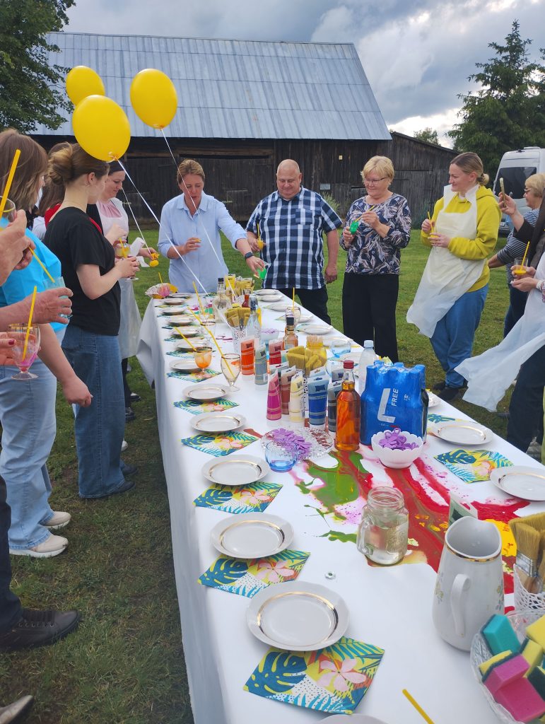 Zitos ir Algio Berneckų sodyboje Vaitakiemyje birželio 5 dieną virpėjo kūrybinės dirbtuvės. Čia lankėsi Kauno Akademijos bendruomenės nariai, kurie atvežė ne tik dažus, teptukus, bet ir neįkainojamą šilumą, kultūrinį artumą ir supratimą mūsų tradicijoms. Tai buvo ne šiaip sau užsiėmimai – vyko spalvotas susitikimas ant baltos staltiesės, mūsų laukų, gamtos, mūsų bendruomenės narių apsupty.